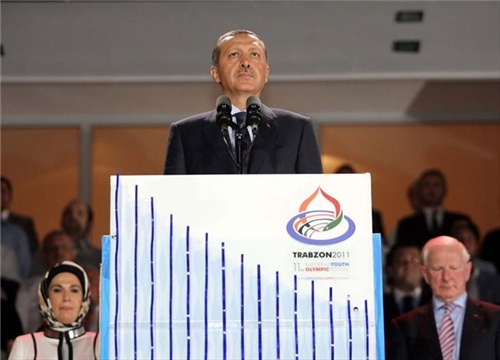 Başbakan Erdoğan saygı duruşunun ardından yaptığı konuşmada: ”Olimpiyat bayrağının ilk kez dalgalanmasında büyük bir gurur duyuyorum. Sporun içinden gelen ve spora büyük emek veren bir Başbakan olarak şu gerçeği özellikle vurgulamak istiyorum. Müzik gibi, edebiyat gibi, sanat gibi sporun dili de evrensel bir dildir. Bu evrensel dil sevginin, barışın, bütün sınırları aşan ve insanları kucaklaştıran bir dildir. Spor alanındaki rekabet, gücün değil, estetiğin, zarafetin, inceliğin rekabetidir. Türkiye’nin her alanda dünya ile bütünleştiği ve gücüne güç kattığı bu dönemde spor alanına yaptığımız yatırımlarla ve elde ettiğimiz başarılarla büyük onur duyuyoruz.” dedi.