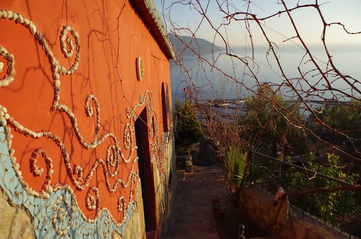 Kocaman bir bahçeleri var ve önünüz sonsuz bir deniz. Denizden 50-60 metre kadar yüksekteyiz ve deniz ayaklarımızın dibinden sonsuzluğa kadar uzanıyor. Muhteşem bir manzara var.
