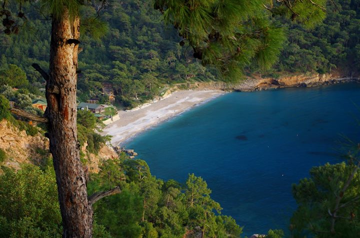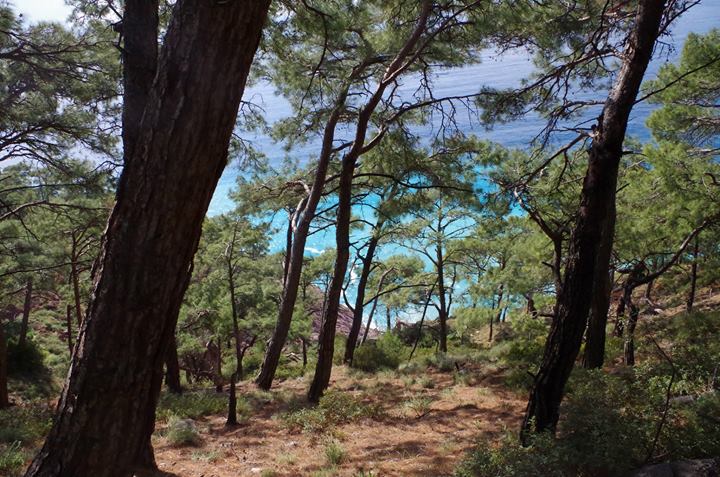 Bir anda kendimi ormanın içinde buluverdim. Arıların ve kuşların sesi ormanın içerisinde yankılanıyor. Çıt yok. Tarifsiz bir güzellik var. Patika boyu bazı yerlerde manzara o kadar güzel ki, sindirebilmek için durup birkaç dakika izliyorum ve yürümeye öyle devam ediyorum. Ormanın içerisinden aşağı doğru denize bakıyorum. Çam ağaçlarının arasında turkuaz rengi bir koy ışıl ışıl parıldıyor.