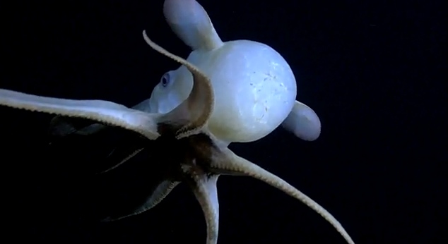 Yüzgeçleri tıpkı birer kulağa benzeyen dev beyaz ahtapot Grimpoteuthis bathynecte, denizin 3.000 – 4.000 metre, hatta 7000 metre derinliğnde yaşayan bir deniz canlısı türü. Bugüne kadar kaydedilmiş en büyük ahtapot, yaklaşık 2 metre uzunluğunda ve 6 kilo ağırlığında.