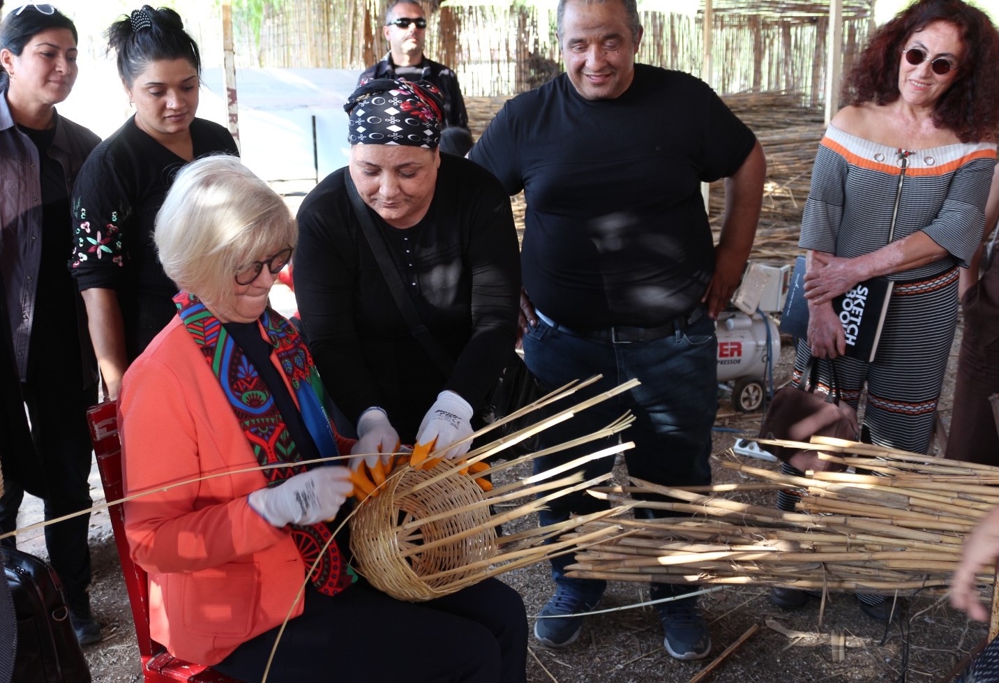 Almanya Büyükelçisi Sibylle Katharina Sorg Roman kadınlarla birlikte sepet örerken (Fotoğraf: Halil Yılmaz)