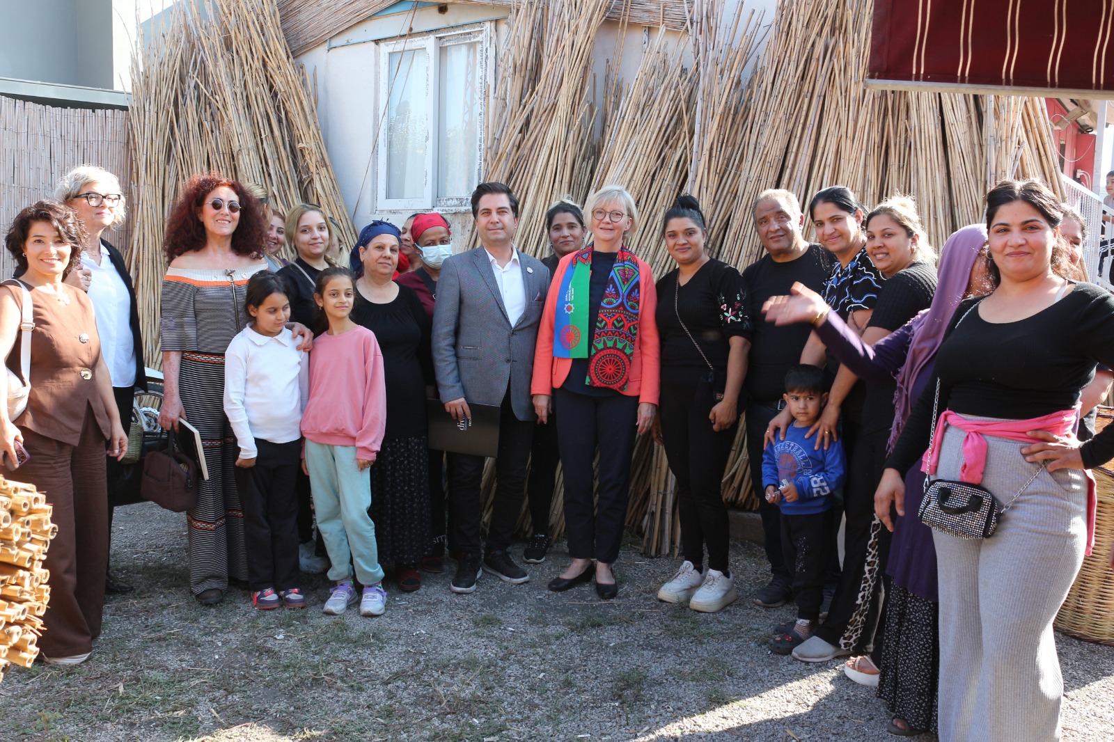 Almanya Büyükelçisi Sibylle Katharina Sorg gerçekleştirdiği rutin ziyaretler kapsamında Mersin’de Romanlarla buluştu. Buluşma Akdeniz Roman Dernekleri Federasyonu’na (AKROFMED) İSKEP projesi kapsamında tahsis edilen ve Romanların hasır üretimi gerçekleştirdiği TORTEK binasında gerçekleşti. Büyükelçi Sorg’u Akdeniz Roman Dernekleri Federasyonu Başkanı Ali Daylam, Mersin Üniversitesi Roman Eylem Planı’ndan Sorumlu Öğretim Üyesi ve AKROMFED Kültür Sanat Politikaları Koordinatörü Nurseren Tor, Uluslararası Gazeteciler Cemiyeti Mersin Şubesi Başkanı ve gazetemiz imtiyaz sahibi Gültekin Hakan Koçman, Roman kadınlarla beraber karşıladı.