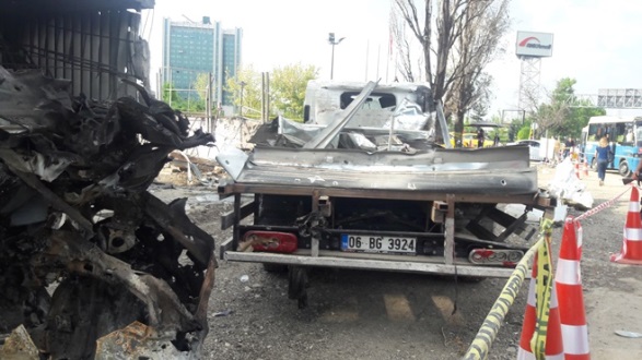 Çok sayıda vatandaş emniyet müdürlüğüne gelip olayın gerçek yüzünü olay yerinde görüp fotoğraflarını çekiyorlar. Yoldan geçen araçlar da trafiğin yoğunluğuna aldırmadan yıkımı görmek için yavaşlıyor. İşte Ankara Emniyet Müdürlüğü’nün bir F 16 uçağının iki sorti yaparak bombaladığı binalarının bu günkü durumu :