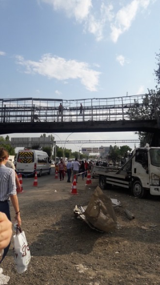 Ankara Emniyet Müdürlüğü’nün 15 temmuzda vurulmasından sonra çok büyük hasar aldığı binalar ve önünde park etmiş araçlar halkın görmesi için sergileniyor. Tankların etraftaki araçları ezerek içine kadar girdiği binada o akşam henüz görevlerinin başındaki 50 polisin hayatını kaybettiği belirtiliyor.