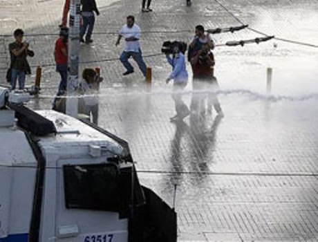 Kalabalık polisin bu çok sert müdahalesine karşı direnişe devam ediyor.