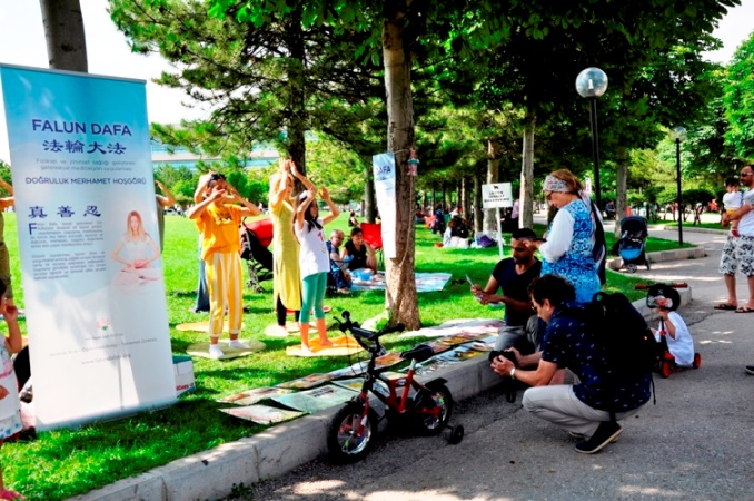 Uygulayıcıların yaptığı egzersizler etrafta bulunan vatandaşların ilgisini çekti. Çok sayıda kişiye Falun Dafa uygulaması tanıtıldı ve faydaları anlatıldı. Çok sayıda broşür dağıtıldı. Piknik yapmak için Ahlatlıbel Piknik alanına gelen vatandaşlardan bazıları egzersizleri öğrenmek istediler ve uygulayıcılarla birlikte egzersizleri yaptılar.