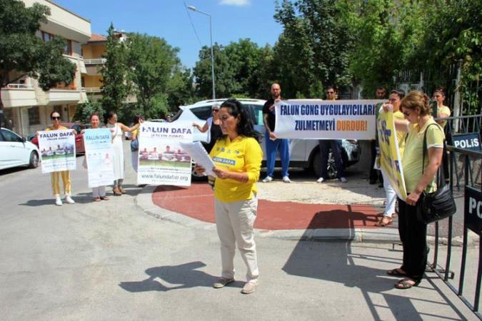 Uygulayıcılar, Çin’deki Falun Dafa uygulayıcılarına karşı 16 yıldır devam eden zulmün durdurulması için 13 Temmuz 2015 Pazartesi günü sabah saat 11 :00’de Ankara’daki Çin Büyükelçiliği önünde bir araya geldiler.