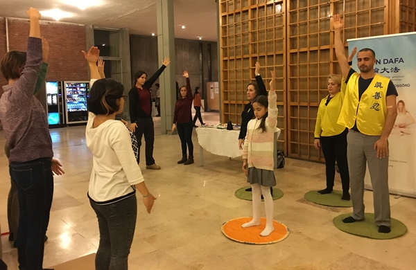 Çin’de Dafa uygulayıcılarına uygulanan zulüm hakkında da bilgi verildi. Bu esnada orda bulunanlar bu konuyu daha önce hiç duymadıklarını söylediler ve anlatılanları ilgiyle dinlediler.