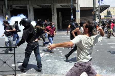 Protesto gösterileri bugün başkent Atina’da kalabalık gruplar halinde başladı. Polis ile göstericiler arasında çatışma yaşandı. Protestocular polise taş ve yangın bombası attılar. Barışçıl başlayan protesto gösterisi, göstericilerin kaldırım taşlarını söküp polise fırlatması ile çatışma haline dönüştü.