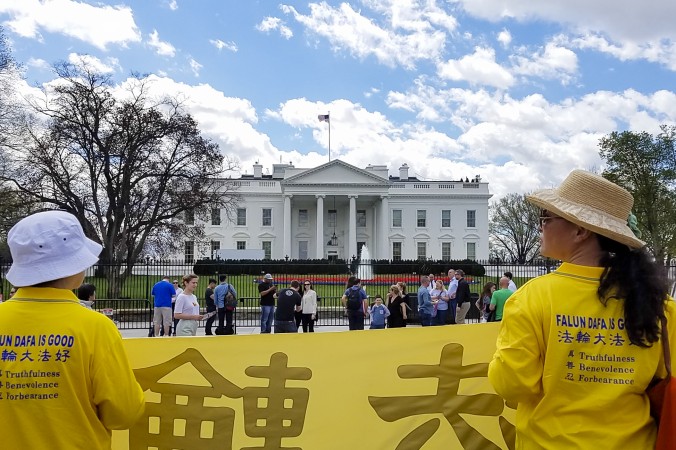Beyaz Saray’ın karşısında bir araya gelen Yu ve diğer uygulayıcıların, Trump için iki mesajları var.