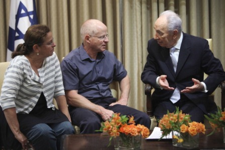 Şalit’in babası Noam, annesi Aviva, kardeşi Joel ile kız arkadaşı, İsrail Cumhurbaşkanı Peres tarafından Cumhurbaşkanlığı resmi konutunda kabul edildi.