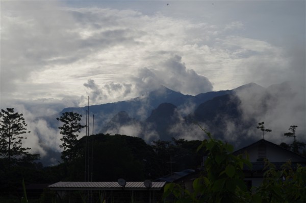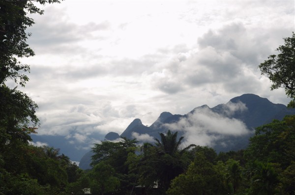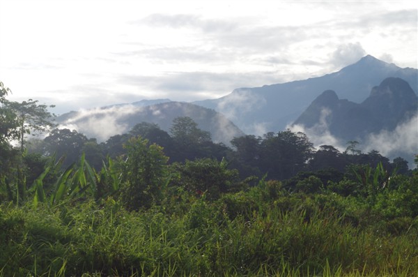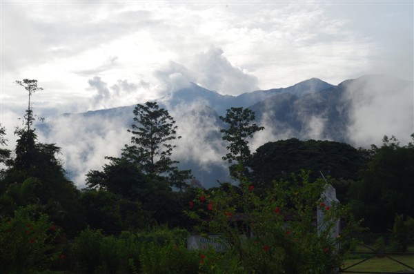 Minik binanın kapısından dışarı çıktığım an, karşımdaki manzarayı görünce şöyle bir durma ihtiyacı hissettim. Bu kadar güzel hoş geldin de denmez ki! Çok çok güzel. Tam karşımda, ormanlarla kaplı ve boğum boğum görünen kireçtaşı tepeler yükseliyor ve bulutlar zirvelerini sarıp sarmalamış. Servis aracına binerek bu güzel yolu heba etmek istemedim. Yaklaşık 1.5 kilometrelik yolu yürürken dünyanın en güzel yolunda yürüdüğümü düşündüm. Sadece tek bir renk var: yeşil. Fakat tropik iklimden dolayı havadaki ışık kırılması çok güçlü ve nemin de etkisiyle tüm bitkiler fosforlu bir yeşil renk yayıyorlar sanki. Bu muhteşem yol boyunca, her türlü egzotik ağaç, size eşlik ediyor.