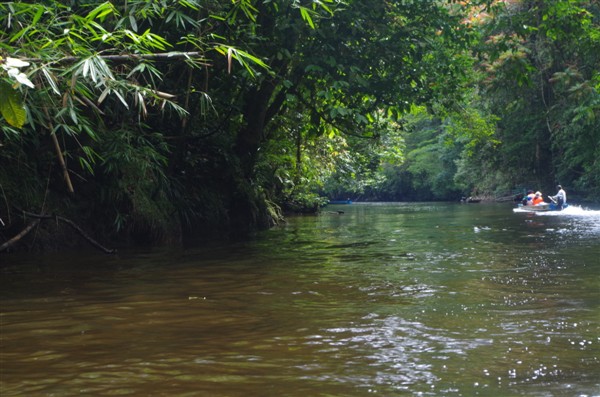 Ertesi gün Clearwater mağarasına gittik. Clearwater mağarasına gidebilmek için önce nehirde yol almanız gerekiyor. İnce uzun ahşap kayıklarla gidiyorsunuz. Bu kayıklara sürat motoru takılı ve bayağı hızlı ilerliyorlar. Nehrin iki tarafı ağaçlarla ve ara ara da dik kireçtaşı kayalarla kaplı. Çok güzel bir doğa var. Nereye bakarsanız bakın hayranlık uyandırıyor. Bazı ağaçlar nehre doğru uzamışlar ve altlarından geçiyorsunuz. Bazı yerlerde çok küçük çakıl kumsalcıklar oluşmuş. Bazı yerlerde ağaç kütükleri nehre devrilmiş. Rüya gibi gerçekten. Yol boyunca, ağaçların üzerinden nehre doğru, yüzlerce sarmaşık ip gibi sarkıyor ve nefis bir görsellik oluşturuyorlar.