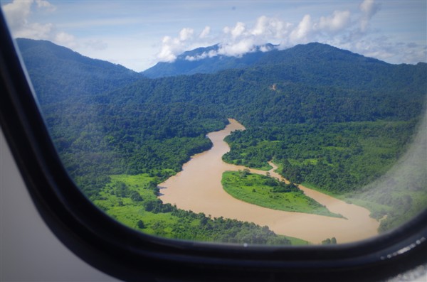 Uçakta Mulu’ya yaklaştığımızda aşağı doğru şöyle bir baktım. Yeryüzü sanki yeşil bir kadife kumaşla kaplanmış gibiydi. Dağlar, tepeler her yer sanki kabarık bir yeşil kadife kumaş gibi görünüyor. Başka bir renk yok. Yağmur ormanlarının arasından, amazondakini andıran bir nehir, kıvrıla kıvrıla bölge boyunca kıvrıla ilerliyor. Hava güneşli ve nemli olduğu için yeşilin binbir tonu ışıl ışıl parıldıyor.