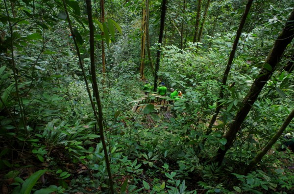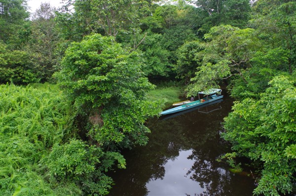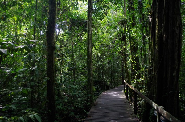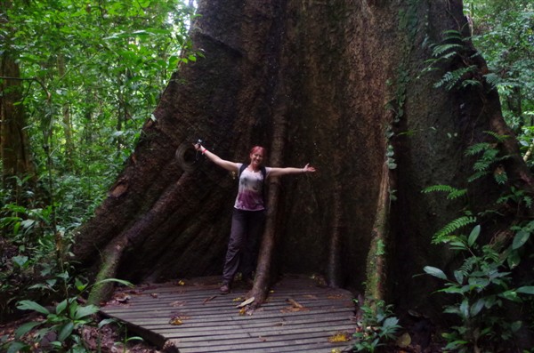 Devasa ağaçlar var. Hani okların arkasına, sapmadan yol alsınlar diye ”+” biçiminde tüy monte ederler ya, ormandaki ağaçların gövdeleri de aşağı doğru indikçe, dört bir yana doğru açılıyor ve bazılarının enleri 4-5 metreyi buluyor. Gerçekten muhteşemler. O kadar yoğun bir bitki örtüsü var ki, hava ışıl ışıl olmasına rağmen, ormanın içine ışık giremiyor. Orman zemininde çoğu yerler su, milyonlarca ağaçtan kopan yapraklar ve dal parçaları zeminini sürekli besliyor. Bu platform olmasaydı, içinde yürüyebilmenin herhangi bir yolu olmazdı.