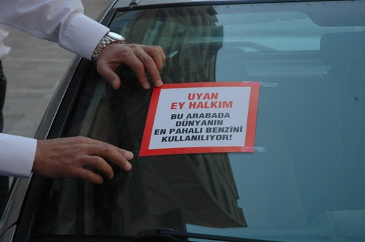 CHP Merkez İlçe Örgütü, CHP Denizli İl Başkanlığı önündeki araçların arka camlarına benzine yapılan zamları protesto etmek amacıyla ‘‘Uyan ey halkım. Bu araçta dünyanın en pahalı benzini kullanılıyor’ yazılı çıkartmalar yapıştıran CHP’liler, daha sonra arabalarına binerek uzaklaştı.