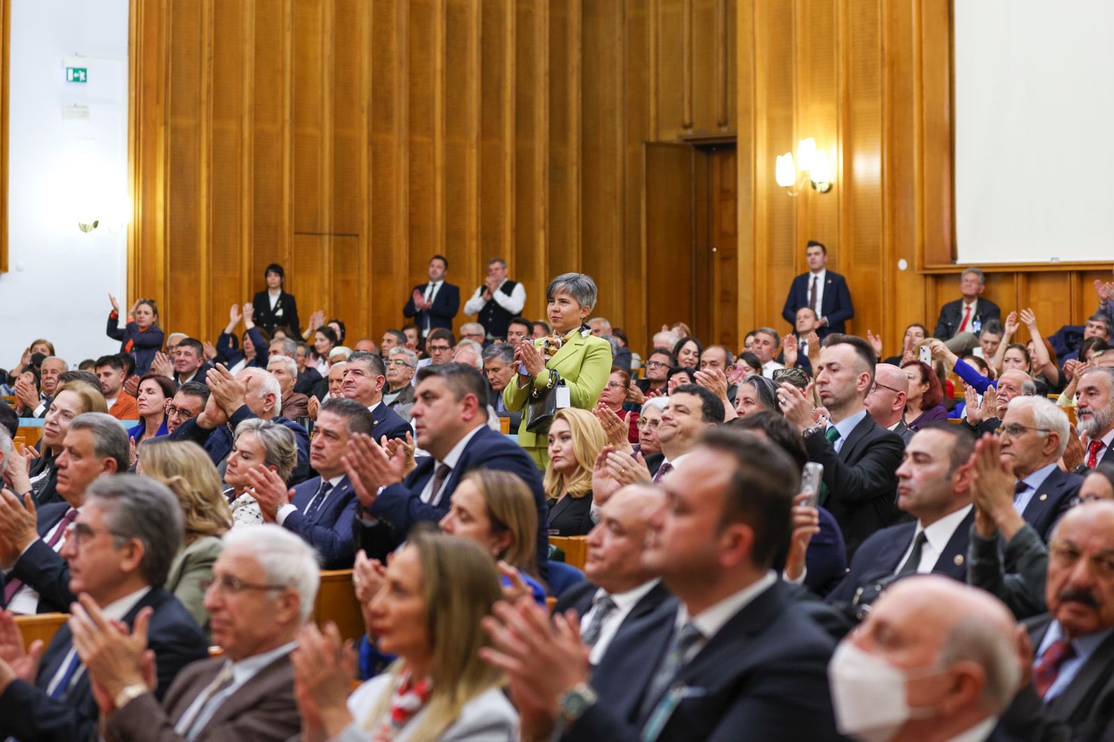 “Bakalım örneğin bugün, altyazı geçiyor. ‘Cumhuriyet Halk Partisi’nin kongresinde 86 kişiye, Ekrem İmamoğlu dahil, ifadelerine başvuruluyor.’ Hepsi orada yazıyor. Şunu söyleyeyim. Ankara Cumhuriyet Başsavcılığı, görevinin gereği olarak kendisine gelen her türlü başvuruyu aldı, dinledi. Adı geçen herkesi, atılan iftira da olsa, adı geçen herkesi de dinliyor. Bu da açık. Yani gizli tanık olmak istediler. Örneğin bir delegemizi gizli tanık diye getirdiler, ‘Gizli tanıklık yok, adını verirsen seni dinlerim’ dediler. Biz buradaki tutumu doğru buluyoruz. Yakından da takip ediyoruz. Adı geçen herkesin dinlenmesi gerekir, öyle takdir edilmiş, dinlenecektir. Sorulan her soruya cevap verilecektir. Atılan her iftira, zaten süreç içinde tamamen ortaya dökülmüştür. Bin 300 cep telefonu yalanı nasıl patladıysa, bütün iddialar teker teker çürüyecektir, çürümektedir. Şu anda ifadesinde başvurulan, Ekrem İmamoğlu içerideyken, ifadesine başvurulan birçok kişi içerideyken ya da salondayken o kara çalınan, o kişisel namuslarına dil uzatılan bin 300 tane aslan gibi Cumhuriyet Halk Partili. O Cumhuriyet Halk Partililer geldiler, bir kez daha perdeyi çektiler, vicdanlarıyla baş başa kaldılar ve iradelerini tazelediler. O kurultaya şaibeli diyenlerin, başta iktidar ve medyası olmak üzere alınlarını karışladılar, hepsini alnından öpüyorum. Geçmişte başlatılan partiye kayyım atanmak için, algı yönetimi için, üç beş meczupla 80 kişinin isminin ortaya atıldığı süreçte soruşturmayı takip ediyoruz, şu kadar endişe edeceğiniz bir şey yoktur. Ancak Cumhuriyet Halk Partisi geçtiğimiz kurultaydan sonra birilerinin yandaş medyanın köpürtmeye çalıştığının aksine, ayrısı gayrısı olmayan, ötekisi olmayan, kol kola, omuz omuza iktidara yürüyen bir partidir, tüm üyelerimizi saygıyla selamlıyorum.”