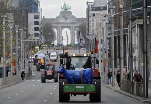 Avrupa’nın her yerinden özellikle, Fransa, Hollanda ve Almanya’dan parlamento binasının önünde gelen binlerce çiftçi ekipman ve traktörleri ile yolları abluka altına aldılar.