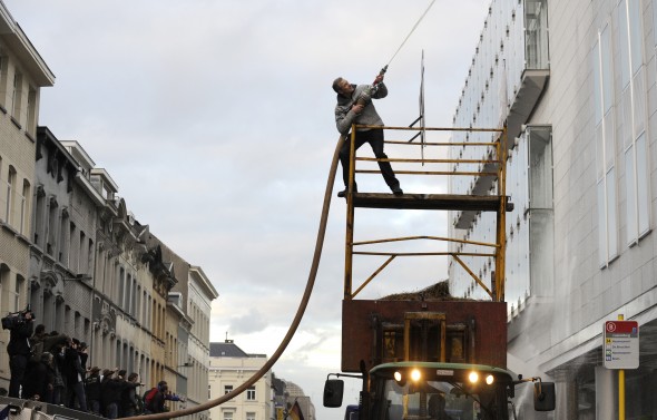 Belçika’nın başkenti Brüksel’de, çiftçiler iki gündür eylem yapıyor. Avrupalı çiftçiler süt fiyatlarını arttırmak ve mandıraların işlerini bırakmamalarını sağlamak için polislere ve parlamento binasına taze süt fışkırtarak protesto yaptılar.
