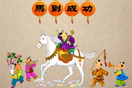 At ile varışta elde edilen anlık zafer” anlamına gelen Çince 馬到成功 (mǎ dào chéng gōng) deyimine, Yuan Hanedanlığındaki (M.S.1279-1368) bazı edebi eserler içinde rastlanabilir. Fakat deyimin kaynağı olan hikâye Qin Hanedanlığına (M.Ö.221-206) kadar dayanmaktadır.
