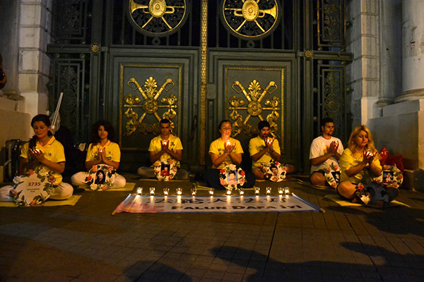 Akşam saat 21.00 civarında uygulayıcılar hep birlikte Çin’de yaşanmakta olan, 3769 ölümün doğrulandığı, fakat gerçek rakamın çok daha fazla olduğu yasadışı zulümde yaşamlarını kaybeden uygulayıcı arkadaşlarını sessiz bir şekilde mum ışığı nöbeti ile andılar. İnsanın kalbine dokunan bu manzara karşısında insanlar, Falun Gong ve Çin’de yaşanan zulüm hakkında daha ayrıntılı bilgi edinmek için bilgi materyallerinden aldılar. Gerçeği, özellikle de ÇKP’nin yürüttüğü insanlık dışı canlı Falun Gong uygulayıcılarından organ toplama eylemini öğrenen insanlar ÇKP’ye karşı öfke ve kınamalarını ifade ettiler.