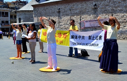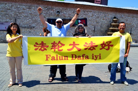 Cuma günü İstanbul Taksim meydanında Çin’de Falun Dafa uygulayıcılarına yapılan işkencenin 12. Yılı nedeni ile bir basın bildirisi okundu. Medya tarafından ve halk tarafından ilgi gören gösteri sırasında işkenceyi anlatan broşürler dağıtıldı.