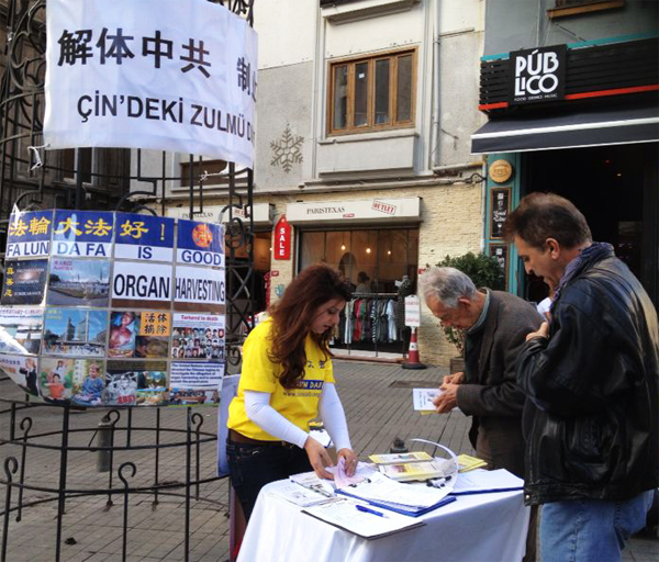Uluslararası düzenlenen imza kampanyasına, Türkiye Falun Dafa uygulayıcıları Taksim Tünel Meydanı’nda düzenledikleri imza kampanyası ile destek verdiler. Hem İstanbullular hem de turistler tarafından yoğun bir katılım ile desteklenen kampanyaya ilgi büyüktü. Katılımcılar genel olarak böyle bir durum yaşanmasını kınadıklarını belirterek bu insanlık suçunun bir an önce sona erdirilmesini dilediklerini belirttiler. Aynı zamanda Falun Gong uygulaması hakkında bilgi alarak yapılan egzersizleri izlediler.