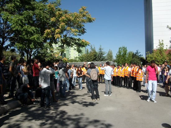 Bu hafta boyunca her gün bir fakülte veya yüksek okulun kayıtlarının yapıldığı üniversitede, bu gün de sıra Dil ve Tarih Coğrafya Fakültesindeydi. Üniversiteyi, yeni gelen öğrencilere tanıtmak amacıyla Tandoğan’daki Ankara üniversitesi Fen Fakültesinin bahçesinde dün bir stand açan öğrenciler bu gün bir engellemeyle karşılaştılar. Özellikle dün izin verilen tanıtım için bu gün izin verilmemesini protesto eden öğrenciler bunun kasıtlı olarak yapıldığını, üniversitenin öğrencilerin olduğunu belirttiler.