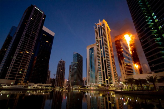Pazar gecesi Dubai Marina yapay adasındaki çok katlı Tamweel Tower binasında meydana gelen yangın sonrasında yaralı ve can kaybı yaşanmadı. Sadece maddi hasar meydana geldi. Yangın çatı kattan alt katlara doğru yayılmaya başladı. Yangının başlamasından itibaren birkaç saat içinde yanan binadan ve yakınındaki diğer binalardan birkaç yüz insan hızla tahliye edildi.