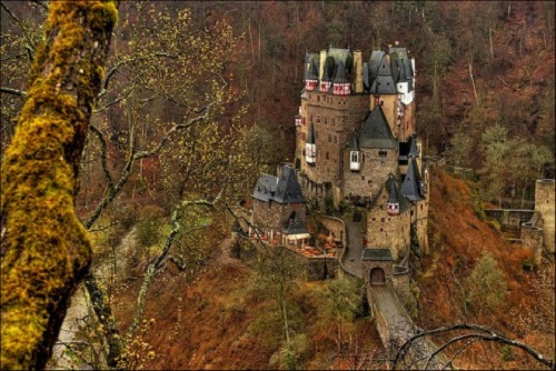 Ren nehri yakınında bir tepede çam ormanlarının içine özenle kurulmuş bir şatodur. Kaleye ulaşmak için ormanın içinden geçmeniz gerekmektedir ve büyüleyen ağaç dallarının arsından yavaş yavaş kendini belli etmeye başlayacaktır. Daha çok bir peri masalı içinde olduğunuzu hayal edebilirsiniz. Bu ortaçağ şatosu Eltz ailesinin 3 farklı kuşağına ev sahipliği yapmıştır: Kempenich (Altın Arslan’ın Evi), Rubenach ( Gümüş Arslan’ın evi) ve Buffalo Hornsso evi. 3 ayrı konak halinde olan bu kale tek bir çatı altında birleştirilmiştir.