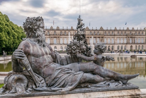 Herrenchiemsee bahçesinde yer alan görkemli heykellerden biri