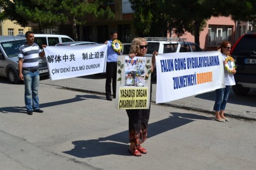 Çin Hükümeti tarafından  Doğruluk Merhamet Hoşgörü ilkelerine dayanan  Falun Dafa uygulamasının  yasaklanmasının  ve  Çin’de Falun Dafa uygulayıcılarına çeşitli yöntemlerle işkence yapılmasının 13 . yılında,  Türkiye’deki  uygulayıcılar Çin Konsolosluğu önünde protesto gösterisi düzenlediler.