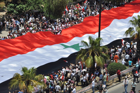Suriye’de, Esad taraftarları sokağa döküldü. “En Büyük Bayrağı Birlikte Açalım” kampanyası adı altında, taraftarlar 2300 metre büyüklüğünde ve 18 metre genişliğindeki bir bayrağı tüm sokak boyunca açtılar.
