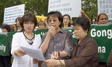 15 Eylül’de Güney Kore Washington Büyükelçiliği önünde, Falun Gong uygulayıcılarını Çin’e geri göndermesin ve onların Güney Kore’de kalmalarına bir çare bulsun diye Başbakan Lee Myung-Bak’a karşı çağrı yapılan bir yürüyüş ve gösteri gerçekleştirildi.
