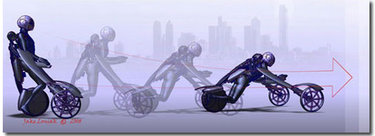 Resimlerde görüğünüz geleceğin motorsiklet tasarımları, California’da bulunan Pasadena Sanat Merkezi’deki tasarım dersinin öğrencilerinin eserleri. Öğrencilerden Jake Loniak’ın “Deus Ex Machina” adını verdiği tasarımı en çok dikkat çekenler arasında.