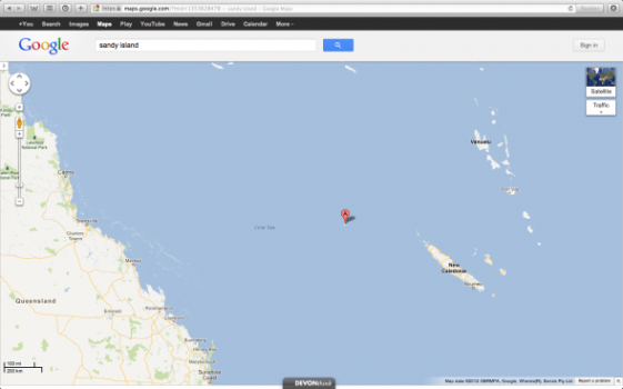 Avustralyalı bilim adamları haritada bulunan fakat yerinde olmayan Sandy adası gerçeğini keşfettiler. Sandy adası, Google Haritaları, Dünya Atlası ve deniz haritaları üzerinde mevcut görünüyor iken bilim adamları tarafından yerine gidildiğinde, var olmadığı tespit edildi.