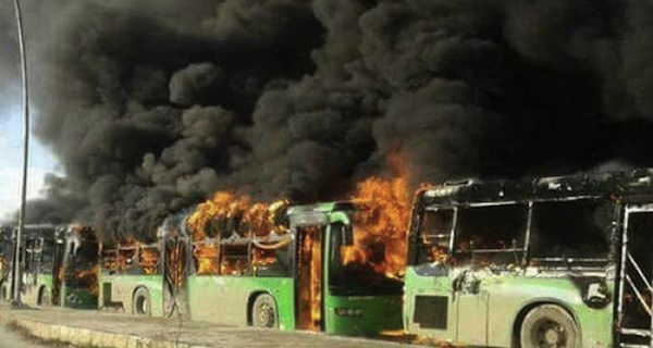 Halep’te mahsur kalan sivillerin tahliyesi için gönderilen otobüslerin Şiilerin yaşadığı Foa bölgesinde yakılması üzerine tahliyeler bir kez daha durdu.