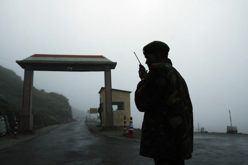 4 Temmuz 2006 tarihinde Bir Hint askeri Hindistan ve Çin arasındaki Nathu La sınır kapısında (DESHAKALYAN CHOWDHURY / AFP / Getty Images)
