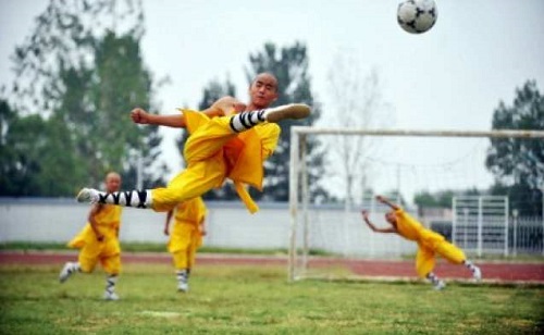 Modern Shaolin keşişleri Henan eyaletinde futbol gösterisi sunuyorlar. (Fotoğraf: STR / AFP / Getty Images)
