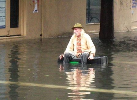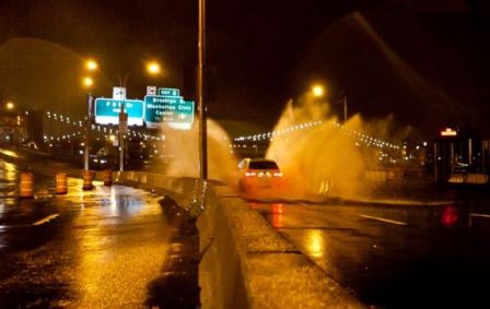 Manhattan’ın en ünlü sokaklarından biri olan Soho’da, Pazar sabahı su seviyesi insanların dizlerine kadar geliyordu. Bazı eğlence düşkünleri Soho’da kürek çekerek sel baskınının keyfini çıkartıyordu.
