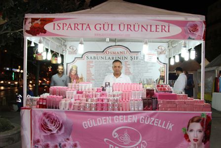 Fuar’da Isparta’nın gül ürünlerinden elde edilen ürünleri sergileyen Isparta doğumlu Ramazan Sarıyer ve İlhan Gözan Isparta güllerinden elde ettikleri krem, sabun, gül suyu vb.. ürünlerin üretimini yapıyorlar. 7 yıldır fuarlarda Isparta’yı ve Isparta’nın gül ile elde edilen ürünlerinin tanıtımını yapmayı görev edindiğini belirten Ramazan Sarıyer 5 ülkeye ithalatını yaptıkları ürünlerin % 100 doğal olduğunu söyledi. Bir süredir Osmanlı sabunları adı altında üretimini yaptıkları bitkisel sabunlardan oldukça iyi verim aldıklarını belirtti.