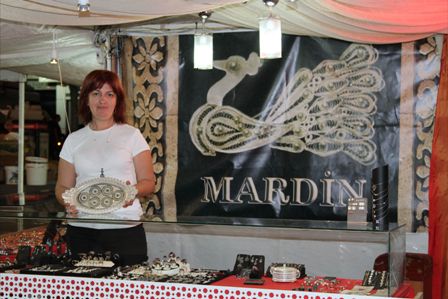 Midyat Gümüş standından Mardin kuyumculuk sanatı ve tarihsel bağlılığı üzerine yüksek lisans da yapan Esra Nurel; Midyat’tan getirdiği telkari gümüşlerinin tanıtımını ve satışını yapıyor. Daha önce yüksek lisansını yaparken 1 yıl Mardin ve çevresinde kaldığını orada çok güzel insanlarla tanıştığını Süryani ve Ermeni kökenli vatandaşların konuk severliklerine hayran kaldığını 6 aydır da bu şekilde organizasyonlar aracılığı ile çeşitli şehirlerde stantlarda bulunduğunu söyleyen Esra Nurel, Mardin ve çevresinde bu işi yapan 2 ya da 3 atölye kaldığını üzülerek ekledi. Teknolojinin telkari sanatından daha değerli eserler çıkaramayacağını ve bu işin yeniden yaygınlaşmasını destekleyen Esra Nurel yoğun ilgiden memnun olduğunu belirtti.