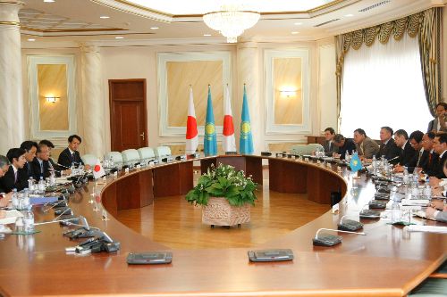 Japonya Dışişleri Bakanı Katsuya Okada, iki günlük resmi ziyarette bulunmak üzere Kazakistan’ın başkenti Astana’ya geldi. Okada, Kazakistan Dışişleri Bakanı Kanat Saudabayev ile Dışişleri Bakanlığı’nda bir araya geldi. Yaklaşık bir saat baş başa görüşen iki bakan, daha sonra heyetler arası görüşmeye başkanlık etti. Kanat Saudabayev, 65 yıl önce Japon halkının üzerine atılan atom bombası sonrasında binlerce masum insanın hayatını kaybettiğini ve Kazak halkının bu acılara ortak olduğunu söyledi. Sovyetler Birliği zamanında 40 yıla yakın Kazakistan’ın Semey şehrinde buna benzer nükleer denemelerin yapıldığını belirten Saudabayev, Kazak halkının da bu acıları yaşadığını belirtti. Kazak bakan Kazakistan’ın bağımsızlığını ilanından sonra Semey poligonunu kapattığını ve Cumhurbaşkanı Nursultan Nazarbayev’in 29 Ağustos’u nükleer silahlara karşı mücadele günü olarak ilan ettiğini dile getirdi.