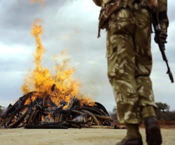 Çarşamba günü Kenya Devlet Başkanı Mwai Kibaki, herkese örnek olması için 5 ton fildişini ateşe verdi. Turuncu renkli alevler ve siyah duman Kenya Vahşi Hayat Eğitim Merkezini tamamen sardı.