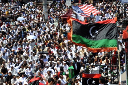 Kaddafi’nin binlerce destekçisi Trablusta’ki yeşil meydanda toplandı. Kaddafi destekçilerine telefon ile seslendi. “Saldırılar durmazsa biz de size benzer bir biçimde muamele etmeye karar verebiliriz. Buna karar verirsek, (savaşı) Avrupa’ya da taşıyabiliriz.” dedi.