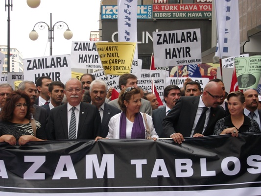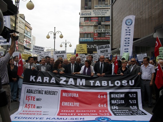 “Yıllardan beri kamu görevlilerinin üzerindeki baskılar artarak devam ederken, yeni yasama dönemiyle başlayan uygulamalar, bizleri daha zor günlerin beklediğini ortaya koymaktadır. Her yıl, siyasi iktidarın gerçekçi olmayan hedeflerine paralel olarak belirlenen enflasyona endekslenen; ekonomik hayatın olumsuzluklarının, geçim sıkıntısının, zorunlu harcama kalemlerindeki fiyat artışlarının göz ardı edildiği maaş artışlarıyla, yoksulluğa, açlığa ve kaderine terk edilen memurlar, dar ve sabit gelirliler ekonomik olarak ayrımcılığa ve zulme tabi tutulmaktadırlar. Hayali enflasyon hesabına göre hazırlanan bütçe hedefleri tutmayınca, vatandaşın sırtına yüklenen vergi artışları ve zamlar artık dayanılmaz hale gelmiştir. Öyle ki 2012 yılı için memur ve emekli maaşlarına toplamda %8,2’lik artış yapılmasına rağmen; Bütçe açıklarının kapatılması için, düşük silindirli otomobillerden alınan ÖTV artırıldı. Tapu harçlarına zam yapıldı. Benzin, mazot ve LPG’den alınan vergiler 30 kuruş yükseltildi. 15 gün içinde benzine tam 4 defa zam geldi. Bununla da yetinilmedi doğalgaz ve elektriğe %10 zam daha yapıldı. Doğalgaza ve elektriğe bu yıl Nisan ayında da yüksek oranlı zam gelmişti.