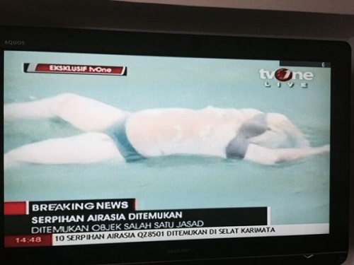 Endonezya medyası su yüzeyine çıkan ceset, bavul, uçak enkazı ve cankurtaran yeleği görüntülerini ekranlara yansıttı.