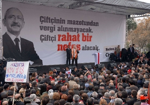 Genel Başkan Kılıçdaroğlu’nin, mitingde CHP’nin tarım politikalarını açıklayacağı duyurulmuştu. Kürsüye boynunda poşuyla çıkan Kılıçdaroğlu ise bunu yerine hükümeti eleştirdi. Mazotu 1,5 liraya düşüreceklerini, aile sigortası getireceklerini, her yoksul ailenin hesabına aylık 600 lira yatıracaklarını vaadetti. Çiftçinin ekip biçtiğini ama emeğinin karşılığını alamadığını söyleyen Kemal Kılıçdaroğlu, “Bir dönem pamuk, bu bölgenin en önemli ürünüydü; şimdi dışarıdan getiriyoruz. Besicilerin unutmaması gereken bir şey var. Cumhuriyet tarihinde ilk kez ithal angus geldi. Koyunumuzu da dışarıdan getirdik. Bu ülkede üretici var, her şey var, niye dışarıdan getiriliyor?” dedi.