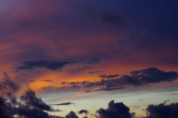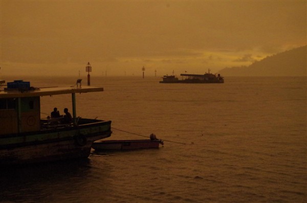 Bulutlar yavaş yavaş kızarmaya başladı. Gün batımını beklerken, bir anda yağmur bastırdı…. Hemen yan tarafımdaki açık hava lokantalarından birine sığındım. Bir masaya oturdum, yağmurun dinmesini bekliyorum. Yanıma orada çalışan çocuklar geldi. Oturdular, tanıştık, konuşmaya başladık, sonra oradaki şef geldi. Kakara kikiri muhabbet başladı. Hepsi Endonezyalı çocukların… Hepsi çok tatlı, utangaç, iyi niyetliler. En azından öyle görünüyorlar. Bu arada, sohbete dalmışken gün batımını unutmuşum, yağmur da bayağı azalmış. Kafamı kaldırıp arkadan süzülen ışığı görünce şoka girdim… Dışarı çıktığımda, başka bir gezegene girdim bir anda galiba diye düşündüm. Böyle bir şey olamaz. Yeryüzü, gökyüzü ve deniz tamamen turuncuya dönüşmüştü… .anlatılamayacak kadar güzel bir gün batımı yaşanıyor burada. Hem de her gün, düşünebiliyor musunuz? Sadece bu olayı görmek için bile Kota Kinabalu’ya gelinir.