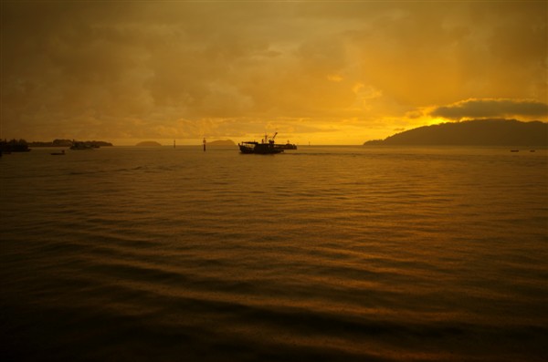Bugün günbatımı esnasında dünkü gibi yağmur da yağmadı, o yüzden ışık daha farklıydı düne göre. Sanki büyük bir kürenin içerisine girmişsiniz gibi bir his yaratıyor. Gökyüzünde zaten inanılmaz bir derinlik hissi var, uzayıp gidiyormuş gibi. Ekvatora yaklaştıkça öyle olurmuş. Gün batımı saatinde burası adeta hipnoz oluyor. Sanki hayata 1 saatliğine ara veriliyormuş gibi… Ben de esas olarak Kota Kinabalu’daki gün batımını merak ediyordum ama dün iyi ki yağmura denk gelmişim, çünkü o da gerçekten inanılmaz bir şeydi…. Yağmur, ışık kırılmasını çok daha farklı bir duruma sokmuştu…Mars gezegenine düşmüş gibi olduk… Her yer ama her yer, deniz, hava, dağlar, tekneler, gözün gördüğü ne varsa turuncuya boyanmıştı…